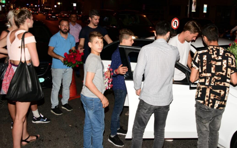 Galerinin tamamı için tıklayınız5 kişilik araca 8 kişi ile binmeye çalışan Tetik’in etrafını o sırada çiçek satıcıları da sardı. Zor anlar yaşayan oyuncu, arkadaşlarıyla birlikte araca bindikten sonra hızla uzaklaştı.