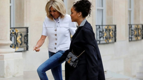 Rihanna aldığı kilolar nedeniyle magazin dünyasının gündeminden düşmüyor. Kilolarını saklamak için sıklıkla bol kıyafetler tercih eden Rihanna bu kez Fransa Cumhurbaşkanı Emmanuel Macron'u ziyaret etti. Ziyarette giydiği kıyafet nedeniyle bir kez daha konuşulan Rihanna'ya sosyal medyada "babasının ceketini giymiş" yorumları yapıldı. Şarkıcı Rihanna, Elysee Sarayı’nda Cumhurbaşkanı Emmanuel Macron ile bir araya geldi. Ancak Cumhurbaşkanı Emmanuel Macron, şarkıcıyla birlikte görüntü vermedi. Rihanna, First Lady Brigitte Macron tarafından Elysee Sarayı merdivenlerinde karşılandı. Brigitte Macron, Rihanna´yı beyaz bir ceket ve kot pantolon giydiği rahat kıyafeti ile karşıladı. First Lady Brigitte Macron tarafından karşılanan Rihanna’nın gri-siyah tonlarında kombini, büyük beden ceketi ve çantası da sosyal medyada konu oldu. 'BABASININ CEKETİ' Kullanıcılar Rihanna’ya "babasının ceketini giymiş" yorumu yaptı. 'YILIN YARDIMSEVERİ' Öte yandan Rihanna Harvard Üniversitesi tarafından 2016 yılının " Yılın En Yardımsever İnsanı" seçilmişti. Rihanna daha önce giydiği cesur kıyafetlerle adından sıkça söz ettiriyordu. Hatta Rihanna bir dönem sütyensiz giydiği kıyafetler nedeniyle sosyal medyanın gündemine oturmuştu.
