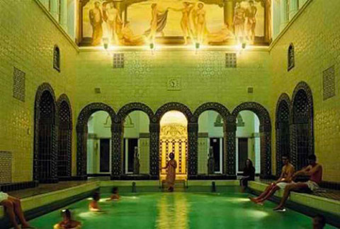 yerine 1913'te inşa edilen bu termal tesiste saunalar ve havuzlar,
