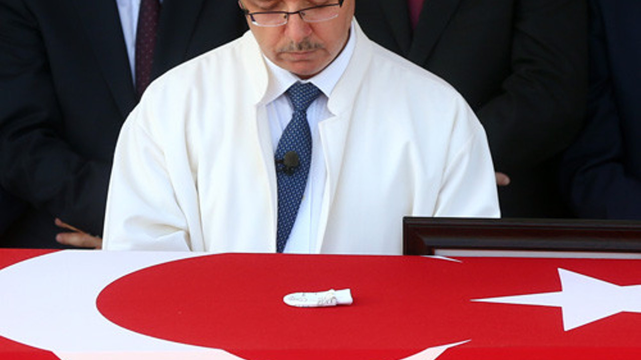Tabutunun üzerine bebeğinin patiği konuldu Galerinin tamamı için tıklayınız Bingöl'de terör örgütü PKK mensuplarınca yol kenarına park edilen bomba yüklü aracın infilak ettirilmesi sonucu şehit düşen polis memurlarından Osman Eray Karademir ve Oğuz Sümbül için Ankara Kocatepe Camisinde cenaze töreni düzenlendi.