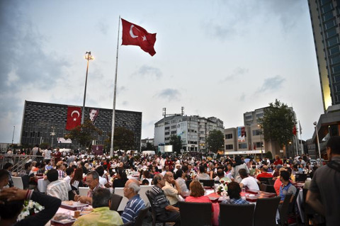 Galerinin tamamı için tıklayınızTaksim Meydanı'ndaki belediye iftarı meydanın tamamını kapladı. Belediye ikramda cömert davrandı. Meydan'daki hava da Ramazan'ın huzuruna uyuyordu.