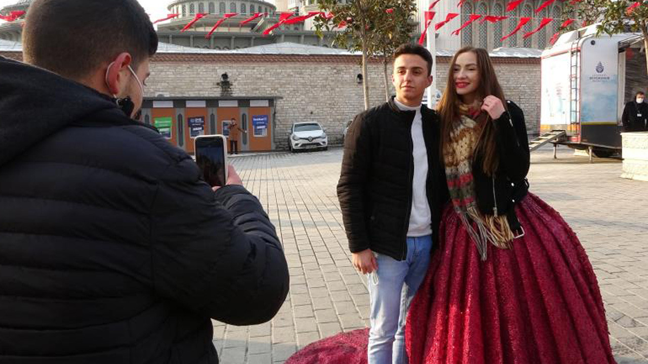 Taksim Meydanı ve İstiklal Caddesi'nde renkli görüntüler yaşandı. Sıfırın altındaki soğuğa rağmen kırmızı renkli bir gelinlik giyen Rus model meydanda ve İstiklal Caddesi'nde dolaşmaya başladı. Model caddede bulunan bir sokak satıcısının yanına giderek kendisine ikram edilen kestane kebabını yedi.Onu caddede bu şekilde görenler ise şaşkınlıkla ne olup bittiğini anlamaya çalıştı. Kadın kırmızılar içerisinde caddede ve meydanda gezmeye devam ederken çok geçmeden işin aslı ortaya çıktı.Adının Yana olduğu öğrenilen kadının bir giyim firması için modellik yaptığı ve Taksim’de katalog çekimi yaptıkları öğrenildi.Yana'nın yanındaki ekip tarafından şehrin en işlek ve popüler yerlerinden olan İstiklal Caddesi'nde ve nostaljik tramvay önünde fotoğrafları çekildi.Meydandaki vatandaşlar ve turistler de onları büyük ilgi ile izlerken, daha sonra Yana ile bol bol hatıra fotoğrafı çektirdiler.