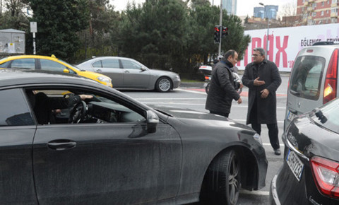 Galerinin tamamı için tıklayınızSoruları yanıtladıktan sonra valeden aracını teslim alan Tamer Karaağlı, yola çıkacağı sırada kaza tehlikesi atlattı. Önüne kıran aracın sürücüsüne “Dikkatli ol! Babanın yolu mu burası?” diye bağıran ünlü oyuncu, sürücüyle bir süre tartıştı.