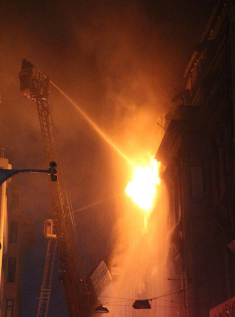 Fatih Tahtakale Mahallesi Tahtakale Caddesi’nde bulunan tarihi Zaza Han'ın birinci katında kozmetik atölyesinde, saat 20.00 sıralarında bilinmeyen bir nedenle yangın çıktı.