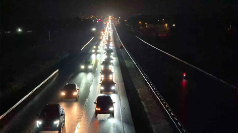 kilometrelerce uzadığı bölgede, zaman zaman trafik akışı durma