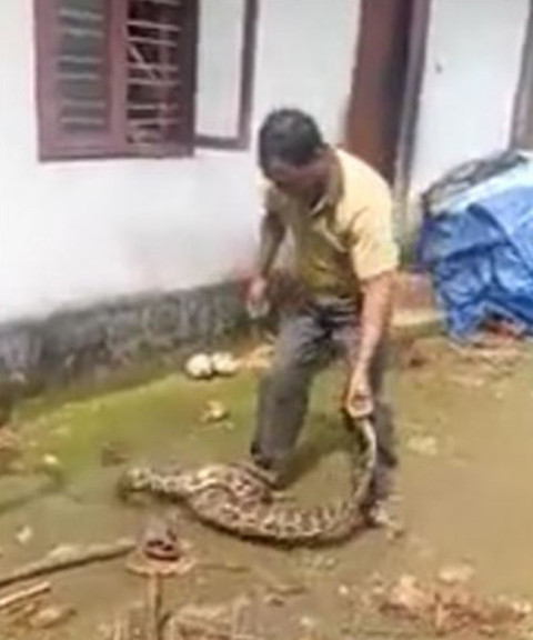 Tavuklarını yiyen pitonu iş üstü yakaladı intikamı acı oldu!