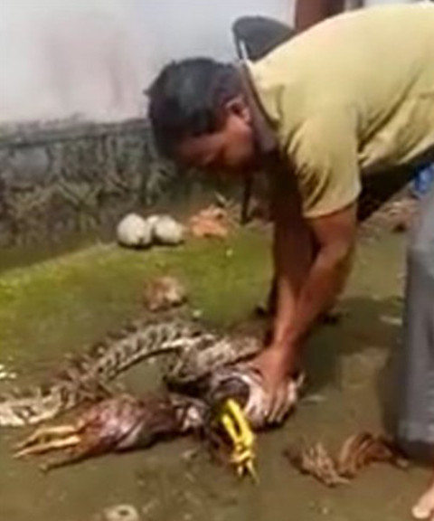 Tavuklarını yiyen pitonu iş üstü yakaladı intikamı acı oldu!