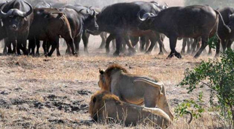 Güney Afrikalı fotoğrafçı Jay van Rensburg Kruger Ulusal Parkı'nda bir buffalo sürüsüne saldıran aslanları böyle görüntüledi.