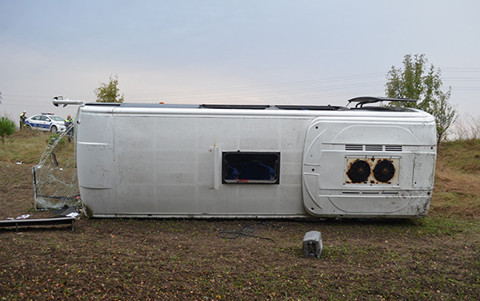 Tekirdağ’da yağış nedeniyle kayganlaşan yolda servis devrildi, 14 işçi yaralandı. Edinilen bilgiye göre, Muratlı ilçesinden Lüleburgaz'a giden Erol S. yönetimindeki 59 S 0344 plakalı midibüs Ballıhoca Mahallesi mevkiinde sürücüsünün direksiyon hakimiyetini kaybetmesi sonucu şarampole yuvarlandı. Durumun bildirilmesi üzerine olay yerine polis, sağlık ve itfaiye ekipleri sevk edildi. Yaralılar, olay yerine gelen 112 Acil Sağlık ekipleri tarafından yapılan ilk müdahalenin ardından Muratlı Devlet Hastanesine kaldırıldı. Kazayla ilgili soruşturma başlatıldı.