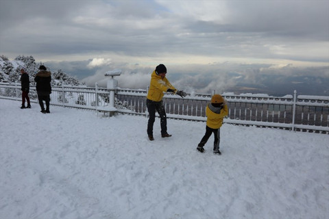 Denizli'nin yanı sıra çevre illerden de gelen vatandaşlar, teleferikle bin 500 metre rakıma çıkarak, karın keyfini yaşayıp doğa ile iç içe vakit geçiriyor.