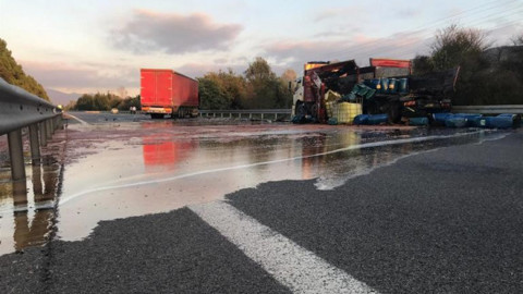Kamyondan dökülen asit nedeniyle TEM otoyolu Ankara istikameti