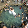 Kentte etkili olan sıcak hava nedeniyle çocuklar, merkez Sur ilçesindeki Anzele Parkı'nda bulunan süs havuzuna girerek serinlemeye çalıştı.