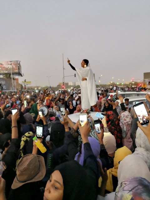Galerinin tamamı için tıklayınızSudan'da Ömer El Beşir'e karşı ayaklanan halka hitap eden ve gösterilerin sembolü haline gelen 22 yaşındaki aktivist Alaa Salah