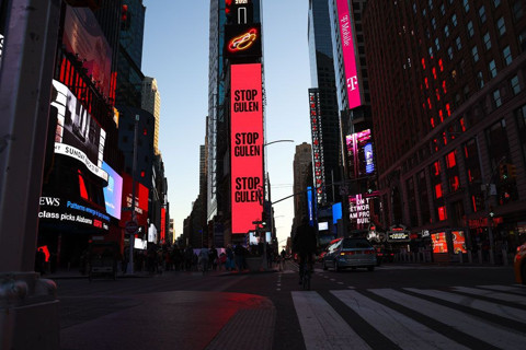 Times Meydanı'nda "Stop Gülen" ilanı! FETÖ'nün karanlık yüzü afişe edildi