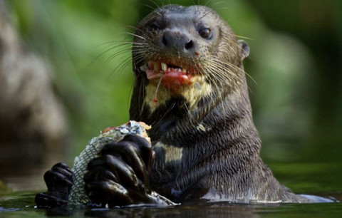 Pek çok hayvanı vahşice öldüren timsah öyle bir hayvan tarafından paramparça edildi ki.. Su samuru timsahı dişleriyle parçalayarak öldürdü.. Parça parça timsahı yiyerek ziyafet çeken su samuru böyle görüntülendi..