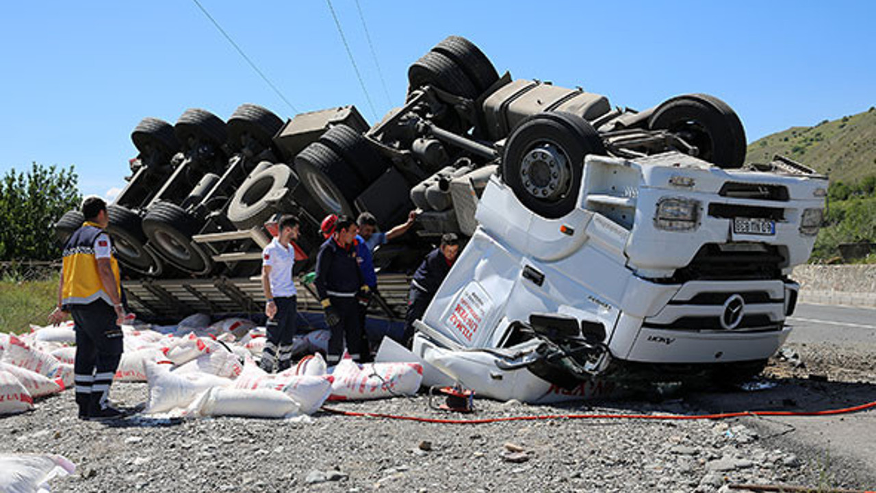 Erzincan’da un yüklü TIR'ın devrilmesi sonucu araçta sıkışan şoför, 3 saat süren çalışmanın ardından yaralı olarak kurtarıldı. Atanur Çabuk'un kullandığı 60 NU 838 plakalı un yüklü TIR, Erzincan-Erzurum karayolu Üzümlü ilçesi Avcılar köyü mevkisinde, sürücüsünün direksiyon hakimiyetini kaybetmesi sonucu yoldan çıkarak devrildi. Çabuk, kazanın şiddetiyle hurdaya dönen TIR'ın çekici kısmında sıkıştı. Durumu gören vatandaşlar ile 112 sağlık ekiplerinin çabalarına rağmen Çabuk, bulunduğu yerden çıkartılamadı. Bunun üzerine Erzincan İl Afet ve Acil Durum Müdürlüğüne bağlı AFAD ve Üzümlü Belediyesi itfaiye ekiplerinden yardım istendi. Kaza yerine gelen kurtarma ekipleri, ilk önce TIR'ın arka kısmını keserek sağlık ekiplerinin yaralıya ulaşmasını sağladı. Ardından ilk müdahalesi sıkıştığı yerde yapılan Çabuk'un yanına giren itfaiye görevlisi, yüzünü yıkadığı yaralının çalışma sırasında şoka girmesini engellemeye çalıştı. Çabuk, ekiplerin yaklaşık 3 saat süren yoğun çalışması ile kurtarıldı. Erzincan Mengücek Gazi Eğitim ve Araştırma Hastanesine kaldırılan Çabuk'un sağlık durumunun iyi olduğu öğrenildi.