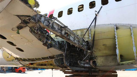 Galerinin tamamı için tıklayınızUçağın kokpit bölümü ile diğer tüm teknik donanımının yanı sıra koltuklar, pencereler, kapılar, tavan ve taban döşemeleri söküldü. Ayrıca düşme sırasında sağ motoru kopan uçağın sol motoru ile burun kısmının söküm işlemi de bitirildi.