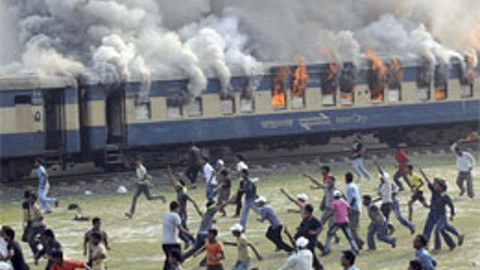 Dinajpur-Dakka seferini yapan ve içinde yüzlerce yolcu bulunan
