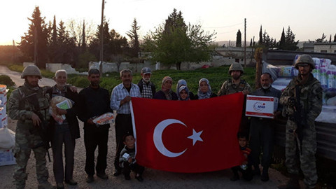 Türk Silahlı Kuvvetlerince (TSK) Afrin'in Zındıkhan ve Eşkansarki köylerinde yaşayanlara gıda ve hijyen malzemesi yardımında bulunuldu. TSK'nın, sosyal paylaşım sitesi Twitter'daki hesabından, Zeytin Dalı Harekatı kapsamında güvenliği sağlanan köylere yönelik yardımlarla ilgili fotoğraflar paylaşıldı. TSK'nın, sosyal paylaşım sitesi Twitter'daki hesabından, Zeytin Dalı Harekatı kapsamında güvenliği sağlanan köylere yönelik yardımlarla ilgili fotoğraflar paylaşıldı. Bu kapsamda, AFAD yardım malzemelerinin olduğu kutular, askerler tarafından Afrin'in Zındıkhan ve Eşkansarki köylerine getirildi. Bu köylerde barınan 140 kişiye TSK tarafından gıda ve hijyen malzemesi yardımı yapıldı. Türk Silahlı Kuvvetlerince (TSK) Afrin'in Zındıkhan ve Eşkansarki köylerinde yaşayanlara gıda ve hijyen malzemesi yardımında bulunuldu. TSK'nın, sosyal paylaşım sitesi Twitter'daki hesabından, Zeytin Dalı Harekatı kapsamında güvenliği sağlanan köylere yönelik yardımlarla ilgili fotoğraflar paylaşıldı. TSK'nın, sosyal paylaşım sitesi Twitter'daki hesabından, Zeytin Dalı Harekatı kapsamında güvenliği sağlanan köylere yönelik yardımlarla ilgili fotoğraflar paylaşıldı. Bu kapsamda, AFAD yardım malzemelerinin olduğu kutular, askerler tarafından Afrin'in Zındıkhan ve Eşkansarki köylerine getirildi. Bu köylerde barınan 140 kişiye TSK tarafından gıda ve hijyen malzemesi yardımı yapıldı.