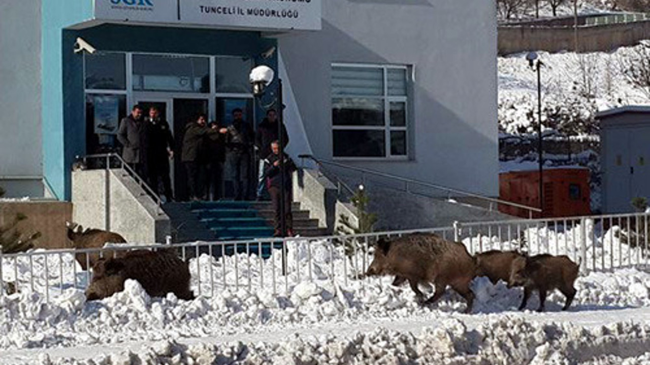 Tunceli'de aç kalan yaban domuzları, kent merkezindeki Atatürk Mahallesi'ne inip, Tunceli-Elazığ karayolu çevresinde yiyecek aradı. Bir süre çevrede gezinen yaban domuzu sürüsü, vatandaşların ilgisini çekti. Domuzlar daha sonra mahallenin üst kısmındaki ormanlık alana girdi. Pülümür Vadisi Kırmızı Köprü mevkisinde de aç kalan yaban domuzları, Kangallı köyü yakınlarına gelerek yiyecek aradı. Vatandaşları fark eden yaban domuzları, ormanlık alana kaçtı.