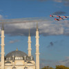 Test uçuşu boyunca ay yıldızlı jetler akrobatik hareketler sergiledi.