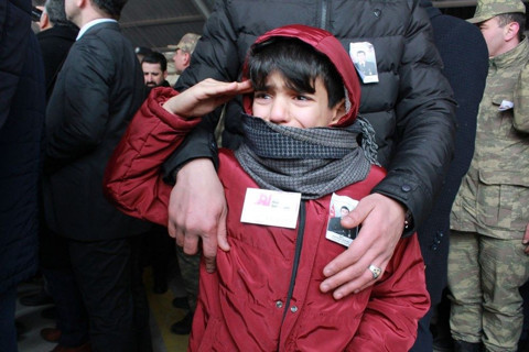 Galerinin tamamı için tıklayınızNamaz sırasında şehidin babası, annesi ve diğer yakınları gözyaşlarını tutamazken şehidin küçük kardeşi ve amcası da asker selamı verdi.