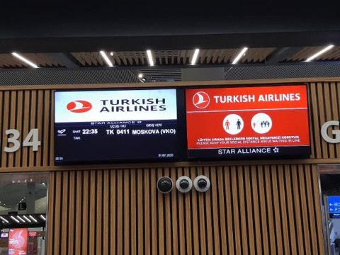 Galerinin tamamı için tıklayınızTürkiye ve Rusya arasındaki uçuş yasağının kaldırılmasının ardından THY, İstanbul - Moskova hattında ilk tarifeli seferini düzenledi. Akşam saatlerinden itibaren Moskova'ya uçmak için İstanbul Havalimanı'na gelen yolcular, güvenlik kontrolünün ardından dış hatlar gidiş terminalinde sosyal mesafe kuralları içerisinde bilet ve bagaj işlemlerini gerçekleştirdi.