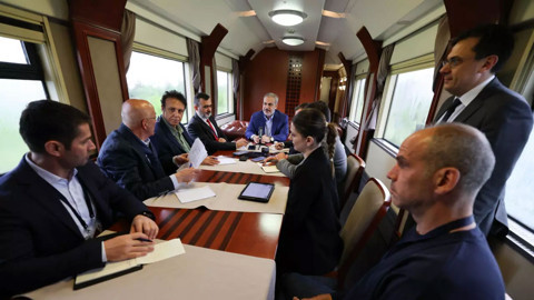 Polonya’dan Kiev’e demir yoluyla hareket etti.