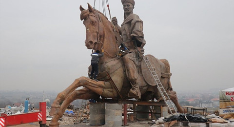 Galerinin tamamı için tıklayınızParkın en önemli parçası olan ve Kazakistan'da yapıldıktan sonra üç parça halinde Bolu'ya getirilen dev Köroğlu heykeli, 500 tonluk vinç yardımıyla birleştirilmeye başlandı. Montaj işleminin tamamlanmasının ardından, tonlarca ağırlıktaki heykel, kaide ile yaklaşık 70 metre yüksekliğe ulaşacak.
