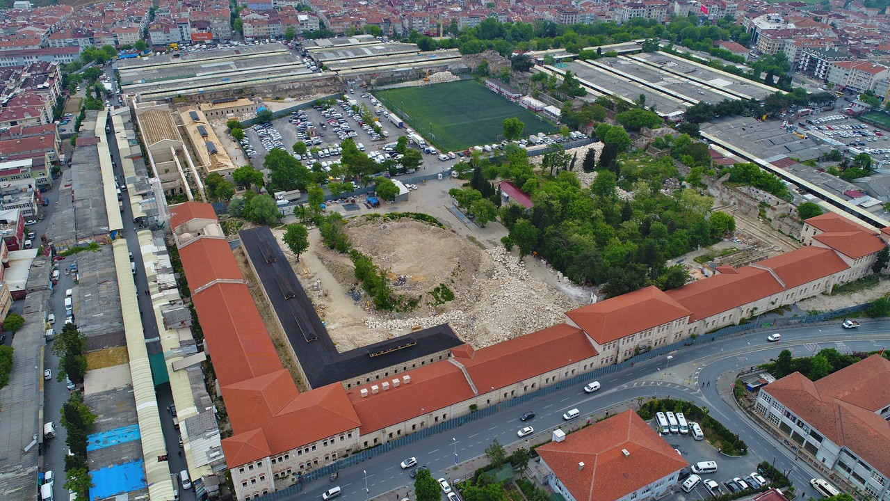 Türkiye’nin en büyük kütüphanesi olacak tarihi kışladaki çalışmalarda son durum havadan görüntülendi. Kışlanın restorasyon çalışmalarında büyük bir ilerleme kaydedildiği görülürken, restorasyon kapsamında yapılan camiinin minareleri de yükselmeye başladı. Sultan III. Mustafa devrinde yapılan İstanbul’daki tarihî Rami Kışlası 220 bin metrekarelik kullanım sahasıyla Türkiye’nin en büyük kütüphanesi olacak. “Rami Kitap ve Kütüphanesi Vadisi” adını taşıyacak kütüphanenin ilk safhada yedi milyon kitaba ev sahipliği yapması planlanıyor. Rami Kitap ve Kültür Vadisi’nde “çocuk”, “sanat” gibi tematik kütüphaneler de yer alacak. Müze, kütüphane, restoranlar, alışveriş mekanları ve 200 dönümlük peyzaj düzenlemesini içeren restorasyon çalışmaları tamamlandığında, 990 toptancı dükkanı, banka ve restoranlardan oluşan 120 ticari mekana ev sahipliği yapmış olacak. Ayrıca ziyaretçiler için 541 araçlık kapalı, 634 araçlık açık, 65 tır olmak üzere toplam bin 240 araçlık otopark da yer alacak. Yapı II. Mahmud döneminde 1826-1828 tarihleri arasında yenilendi. 1960’lı yıllarda ordunun terk ettiği kışla uzun zaman bakımsız kaldı. 250 yıllık geçmişi olan Rami Topçu kışlasının arşivlerdeki adı 'Rami Çiftliği Kışlası'. 80'li yıllarda İstanbul Büyük Şehir Belediyesine devredildi.Restorasyon çalışmaları hızla devam ediyor.