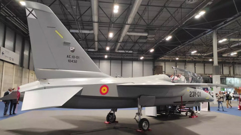TUSAŞ HÜRJET'i İspanya'da İspanyol Hava Kuvvetlerinin kamuflajı ile sergiliyor.