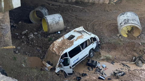 Ekiplerin bölgedeki çalışmaları sonucu servis minibüsü bulunduğu yerden vinçle kaldırıldı.