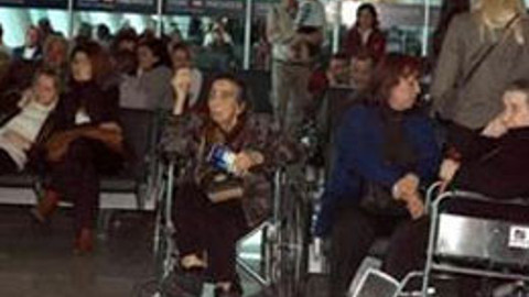 Aralarında tekerlekli sandalyelerde oturan ve yaşlı olan