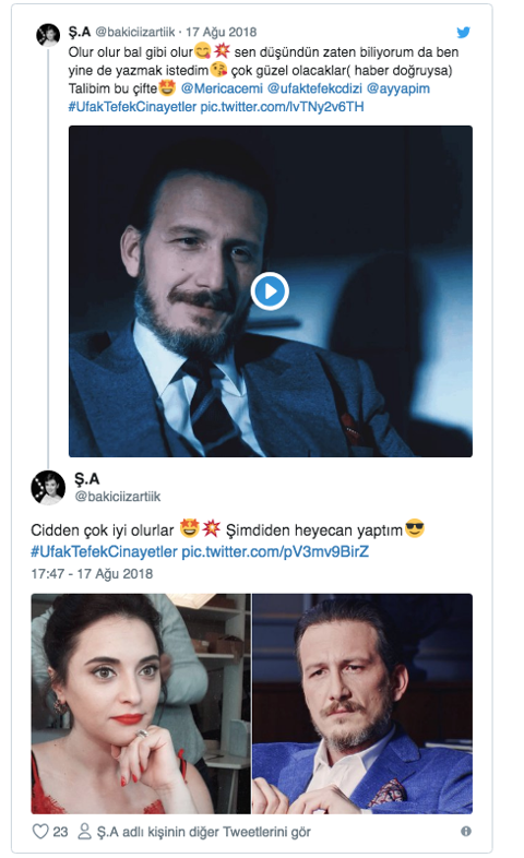 Star Tv'nin entrika dolu, sırlarla çevrili, taht oyunlarının gırla gittiği sevilen dizisi Ufak Tefek Cinayetler sansasyonel bir sezon finalinin ardından yeni sezonuyla tekrar sevenleriyle buluşmaya hazırlanıyor. Dizi'nin yeni sezonuna yeni isimlerin katılması medyada büyük yankı uyandırmıştı. Bildiğiniz gibi yeni sezonda Ushan Çakır'ı da Ufak Tefek Cinayetler dizisinde göreceğiz. Ushan Çakır'ın diziye dahil olmasının ardından Fi dizisinden tanıdığımız usta oyuncu Osman Sonant'ın da kadroya dahil olduğu haberi gündeme bomba gibi düşmüştü. Fi dizisinde canlandırdığı büyük bir işadamı olan Sadık Murat Kolhan karakteriyle oldukça popüler olan Sonant'ın Ufak Tefek Cinayetler dizisinin kadrosuna dahil olması hem Fi hayranlarını hem de Ufak Tefek Cinayetler dizisinin hayranlarında büyük bir şok etkisi yarattı. Osman Sonant'ın dizide karşımıza nasıl bir karakterle çıkacağı henüz kesin değil. Ancak dizinin takipçileri Sonant'ı Aslı Gürbüz'ün canlandırdığı Merve karakteriyle yakıştırmaya şimdiden başladı. İşte Osman Sonant'ın Ufak Tefek Cinayetler kadrosuna dahil olmasının ardından dizinin takipçileri tarafından sosyal medyada yapılan yorumlar...(Kaynak: Televizyon Gazetesi)