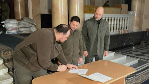 Zelenski, Rus ve Ukraynalı heyetler arasındaki görüşmeler öncesinde bu sabah yaptığı konuşmada AB'ye yeni bir özel prosedür kapsamında acil üyelik çağrısında bulunmuştu. Volodimir Zelenski, Ukrayna'nın Avrupa Birliği'ne resmi üyelik başvurusunu imzaladı.