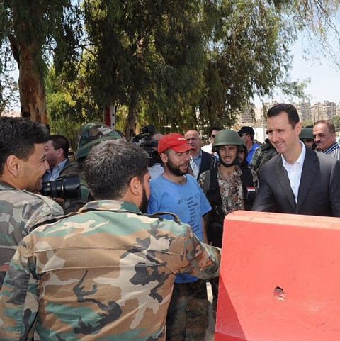 Galerinin tamamı için tıklayınızEsad'ın resmi Facebook sayfasında yayınlanan fotoğrafta Suriye Devlet Başkanı askerlerle selamlaşırken ve konuşurken görülüyor. Esad iki seneyi aşkın bir süredir devam eden iç savaş süresince çok seyrek olarak dışarıda görüldü.