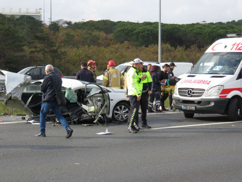 Galerinin tamamı için tıklayınızKaza saat 13.00 sıralarında Ümraniye TEM Otoyolu Çavuşbaşı mevkiinde meydana geldi. Edinilen bilgiye göre Ankara istikametinde giden otomobil bariyerlere çarptı. Araç çarpmanın etkisiyle ikiye bölündü.