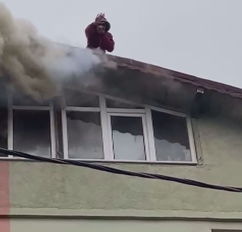 Galerinin tamamı için tıklayınızÇatıda alevlerin etrafını sardığı Mustafa'yı kurtarmak için aynı sokakta oturan vinçli kamyon sahibi Yılmaz Ayhan yardıma koştu. 14 yaşındaki Mustafa, vinç ile kurtarılarak aşağıya indirildi.