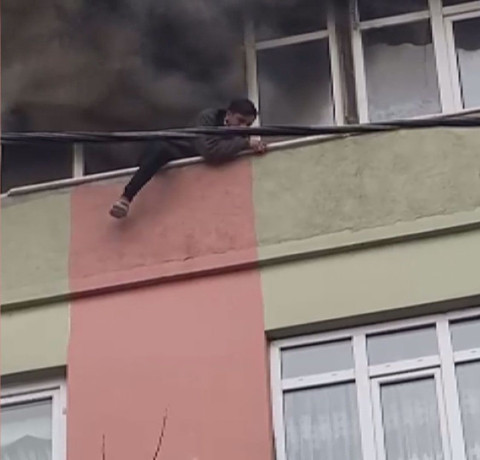 Çatıda mahsur kalan Mustafa ise, "Kahve içiyorduk çatı katında. Perdenin alev aldığın gördük. Sobayı yakmak için kartonlar vardı. Çatıda kuşların suyu vardı onla söndürmek istedim. Çatıya çıktım yavru kuşlarım da vardı. Vinçle beni kurtardılar iyiyim. Kuzenim de Umut battaniyeye atlamış. Hastanede şu an. Onun da durumu iyi" diye konuştu.