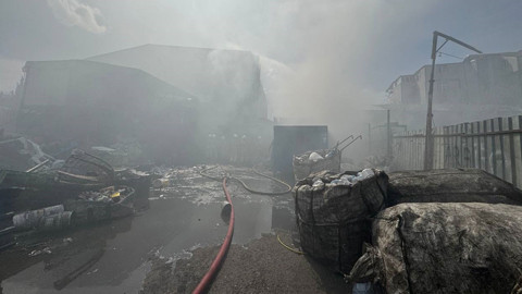 Yoğun dumanın oluştuğu yangına itfaiye ekipleri müdahale ederken, alevlerin hurdalık alanın yanındaki iş yerine sıçraması da önlendi.