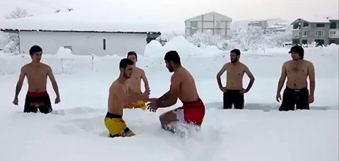 Üniversite öğrencilerinden şortlu kar çılgınlığı!