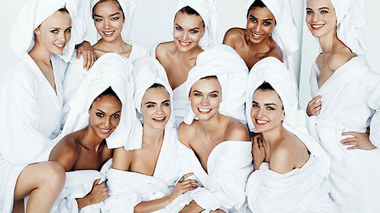 Ünlü fotoğrafçı Mario Testino, “Havlu Serisi” adını verdiği bir fotoğraf serisine imza attı. Havlu Serisi adlı fotoğraflar ilk olarak bu yaz Amerikan Vogue dergisinde görülmüştü. Dergi için mankenlerin bornozlu ve baş havlulu hallerini çeken Testino, aslında bir süredir Instagram hesabında da bu fotoğrafları paylaşıyordu. Başlarda çekim yaptığı mankenleri havluyla çekip kendi Instagram’ında paylaşan fotoğrafçı, bir süre sonra bunu bir seriye dönüştürmeye karar vermiş. Mario Testino, başlarda eğlence amaçlı çektiği fotoğrafların bir seriye dönüşmesinin hikayesini ise şöyle anlatıyor: “Instagram’ı açtıktan kısa bir süre sonra Kate Moss’la bir çekimdeydik. Kate duş almıştı ve soyunma odasında bornozla oturuyordu. O anı görüntülemek ve Instagram’da paylaşmak istedim” Sonrasında da sahne arkasında bu tip görüntüler çekmeye ve eğlencesine paylaşmaya devam etmiş. Bir süre sonra fotoğrafların ne kadar ilgi gördüğünü fark etmiş ve bunu bir fotoğraf serisine dönüştürmeye karar vermiş. Fotoğrafta Xiao Wen, Tian Yi ve CiCi Xiang adlı Çinli mankenleri görüyoruz. Mario Testino, seri için ilhamını ise Elizabeth Taylor’ın Herb Ritts tarafından çekilen pozundan aldığını söylüyor. Taylor’ın başında bir havlu ve boynunda beyaz elmaslarla görüldüğü poz, 1992’de Taylor’ın parfümünün reklamlarında kullanılmak üzere çekilmişti. İşte Mario Testino için poz veren mankenler… Candice Swanepoel Irina Shayk Gisele Bündchen Kim Kardashian'ın kardeşi manken Kendall Jenner Kate Upton Cameron Russell Joan Smalls Karlie Kloss Cara Delevingne