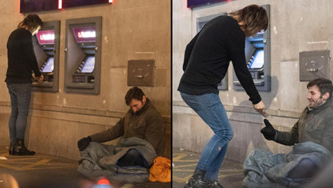 Ünlü sunucu bankamatikten para çekti evsiz adama verdi