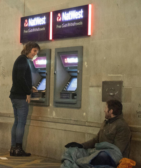 Ünlü sunucu bankamatikten para çekti evsiz adama verdi