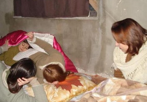 Öyle Bir Geçer Zaman ki'nin Cemile'si Ayça Bingöl, dizide çocuklarını canlandıran oyuncularla mola sırasında.