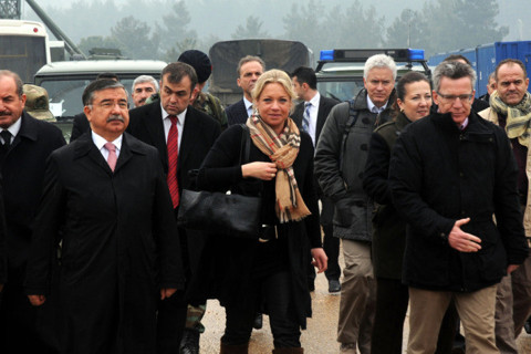 Galerinin tamamı için tıklayınızAlmanya Savunma Bakanı Thomas de Maiziere'in gözünden Hollandalı Savunma Bakanı'nın üşüdüğü kaçmadı.