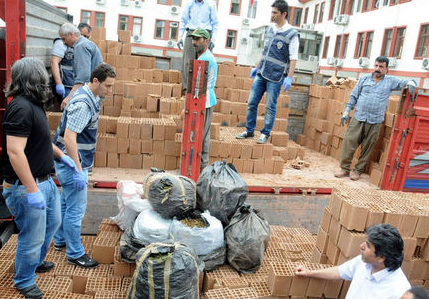 Uyuşturucu kaçakçılarının denemedikleri yöntem kalmadı, ama dikkatli polis bunu da yutmadı... Mersin Emniyet Müdürlüğü Kaçakçılık ve Organize Suçlarla Mücadele Şube Müdürlüğü ekipleri tuğla yüklü bir kamyonda yaptıkları aramada 75 kilo kubar esrar buldu. Olayla ilgili 1 kişi gözaltına alındı. HAbertürk'ten Beycan Üçkardeş'in haberine göre Bir süredir sürdürdüğü çalışmalar sonucunda Diyarbakır'dan Mersin'e esrar sevkiyatı yapılacağı bilgisini alan narkotik polisi, D-400 karayolu Mersin girişinde durdurduğu 33 U 1586 plakalı tuğla yüklü aracı Mersin Emniyet Müdürlüğü bahçesine çektirdi. Araçta yapılan aramada tuğlalar arasına gizlenmiş 9 poşet halinde toplam 75 kilo kubar esrar ele geçirildi. Olayla ilgili kamyon sürücüsü N. E. gözaltına alındı. Mersin Emniyet Müdürlüğü Kaçakçılık ve Organize Suçlarla Mücadele Şube Müdürlüğü ekipleri geçtiğimiz günlerde de Mersin'de muz konteynerinin içinde her biri 1 kilogram ağırlığında siyah poşetlere sarılı, preslenmiş halde toplam 91 paket kokain, ayrıca Halkkent Mahallesi'ndeki bir eve düzenlenen operasyonda da çuvallar içinde 75 kilo 285 gram eroin ele geçirmiş, olayla ilgili 3 kişi gözaltına alınmıştı. Ele geçirilen kokainin piyasa değerinin 9 milyon dolar, eroinin ise 1 milyon Euro olduğu belirtilmişti.
