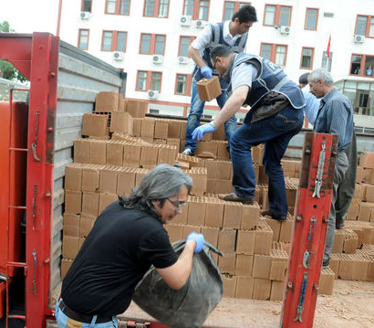 Uyuşturucu kaçakçılarının denemedikleri yöntem kalmadı, ama dikkatli polis bunu da yutmadı... Mersin Emniyet Müdürlüğü Kaçakçılık ve Organize Suçlarla Mücadele Şube Müdürlüğü ekipleri tuğla yüklü bir kamyonda yaptıkları aramada 75 kilo kubar esrar buldu. Olayla ilgili 1 kişi gözaltına alındı. HAbertürk'ten Beycan Üçkardeş'in haberine göre Bir süredir sürdürdüğü çalışmalar sonucunda Diyarbakır'dan Mersin'e esrar sevkiyatı yapılacağı bilgisini alan narkotik polisi, D-400 karayolu Mersin girişinde durdurduğu 33 U 1586 plakalı tuğla yüklü aracı Mersin Emniyet Müdürlüğü bahçesine çektirdi. Araçta yapılan aramada tuğlalar arasına gizlenmiş 9 poşet halinde toplam 75 kilo kubar esrar ele geçirildi. Olayla ilgili kamyon sürücüsü N. E. gözaltına alındı. Mersin Emniyet Müdürlüğü Kaçakçılık ve Organize Suçlarla Mücadele Şube Müdürlüğü ekipleri geçtiğimiz günlerde de Mersin'de muz konteynerinin içinde her biri 1 kilogram ağırlığında siyah poşetlere sarılı, preslenmiş halde toplam 91 paket kokain, ayrıca Halkkent Mahallesi'ndeki bir eve düzenlenen operasyonda da çuvallar içinde 75 kilo 285 gram eroin ele geçirmiş, olayla ilgili 3 kişi gözaltına alınmıştı. Ele geçirilen kokainin piyasa değerinin 9 milyon dolar, eroinin ise 1 milyon Euro olduğu belirtilmişti.