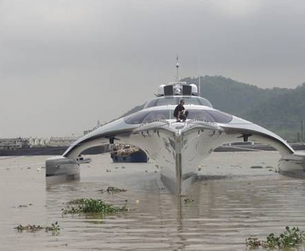 Çin´de yapımı beş yıl süren ve 15 milyon sterline (43 milyon TL) mal olan uzay mekiği görünümlü süper yat, denize indirildi.