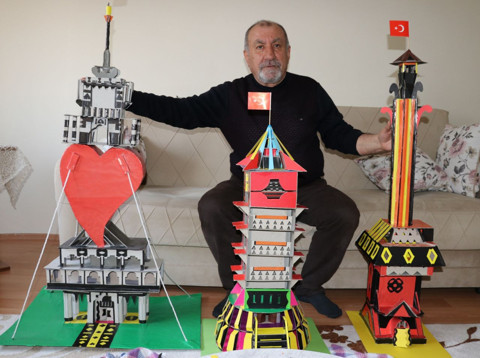 Galerinin tamamı için tıklayınız3 adet yaptığı maket evlerden birinde 4 kutsal dini ele aldığını dile getiren Güleryüz, “İslamiyet’te 32 farzı, Hasan ve Hüseyin’i, semavi kitabın ve kalbin yer aldığı gönül evini temsil ediyor” diye konuştu.